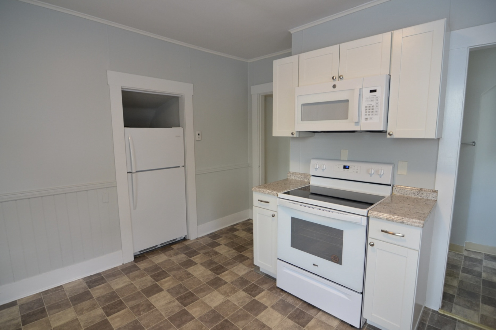 Kitchen is updated with new appliances, including flat cook-top range.