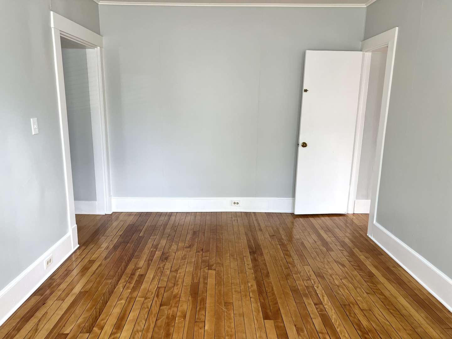 Hardwood floors through the living room and bedroom.